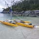 Technische Daten Länge Hauptrumpf: Länge Ausleger: Breite Hauptrumpf: Breite max. mit Auslegern: Breite min. mit Auslegern: Tiefgang: Volumen Auslegerrümpfe: Gewicht Hauptrumpf: Gewicht kompl. segelfertig: empfohlene max. Zuladung: Großsegel: Vorsegel: |